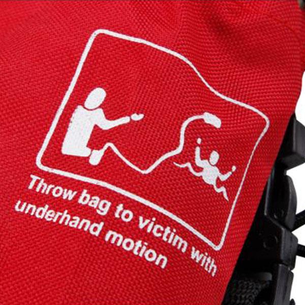 De werpzak heeft een drijver in de zak waardoor de zak blijft drijven. De lengte van de lijn is 18 meter en door het eigen gewicht is de werpzak goed te werpen richting een drenkeling vanaf de kant of vanuit een boot. Te gebruiken bij redding van bij kennis zijnde drenkelingen.